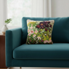 Printed on sumptuously soft velvet fabric, the cushion combines intricate artistic detail with tactile luxury. The soft pinks, greens, and gentle natural tones create a serene focal point, making it ideal for modern living rooms, stylish bedrooms, or restful garden rooms.