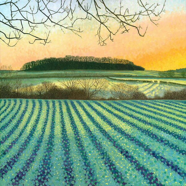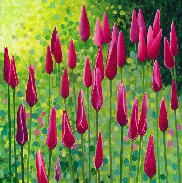 A 15cm square art card supplied with white envelope and cello wrapped.
