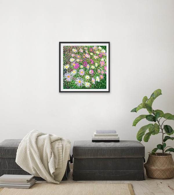 Images are available in two mount sizes (40cm and 50cm) and two frame sizes    (45cm and 55cm). Simple square edged frames in FSC certified wood are available in a choice of black or white.