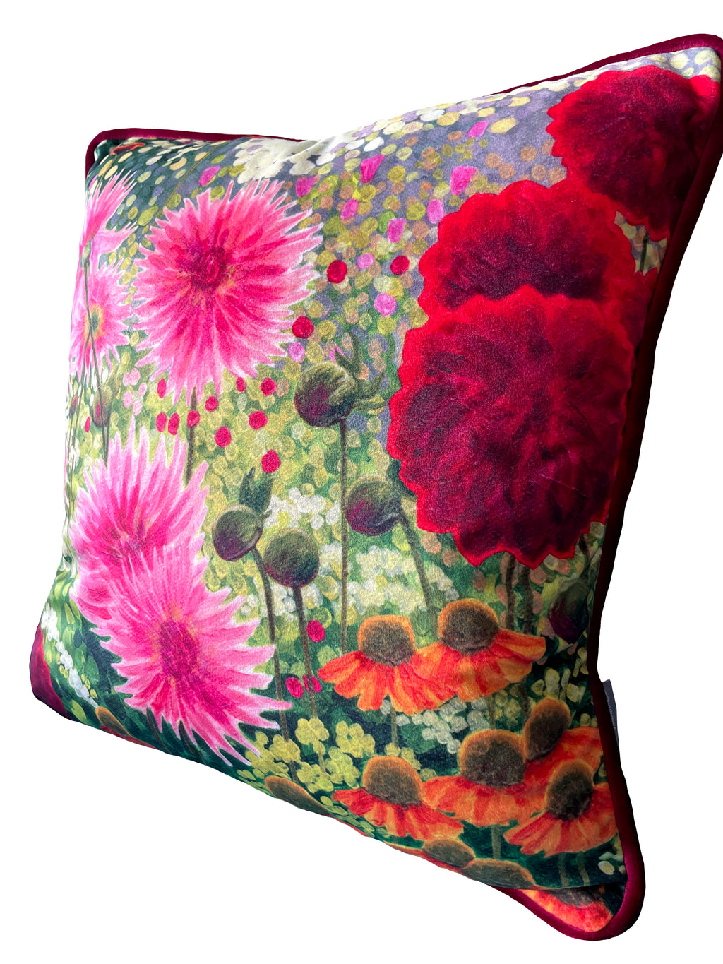 Late Summer Garden Luxury Velvet Cushion – 42 cm & 56 cm by Susan Entwistle