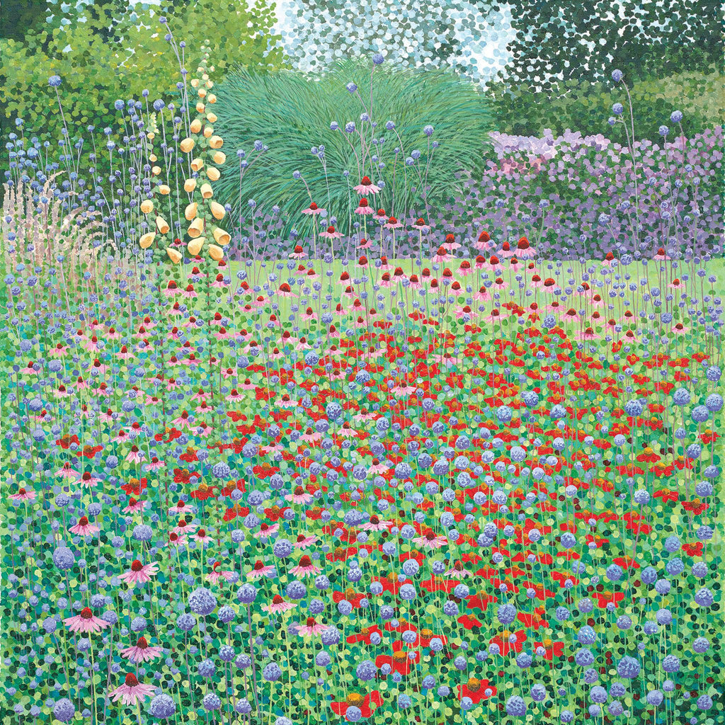 A 15cm square art card supplied with white envelope and cello wrapped.
