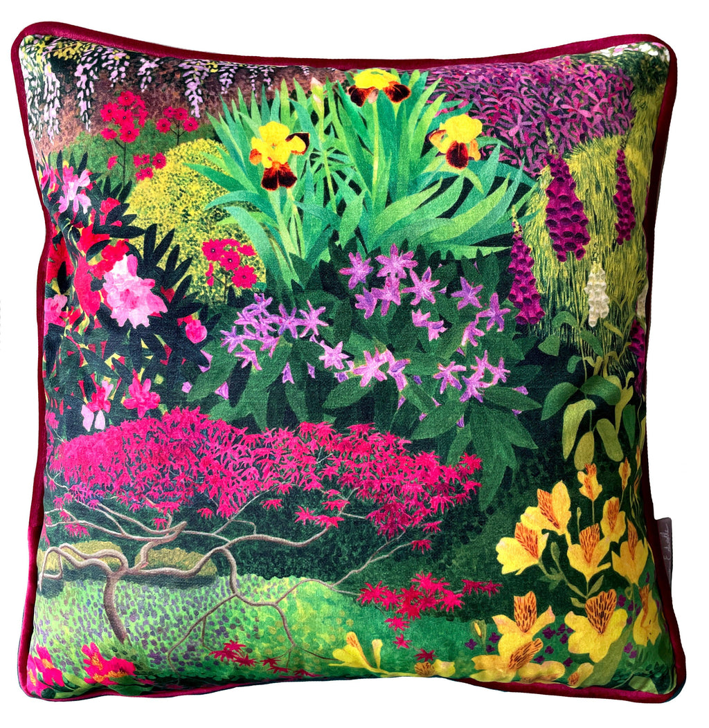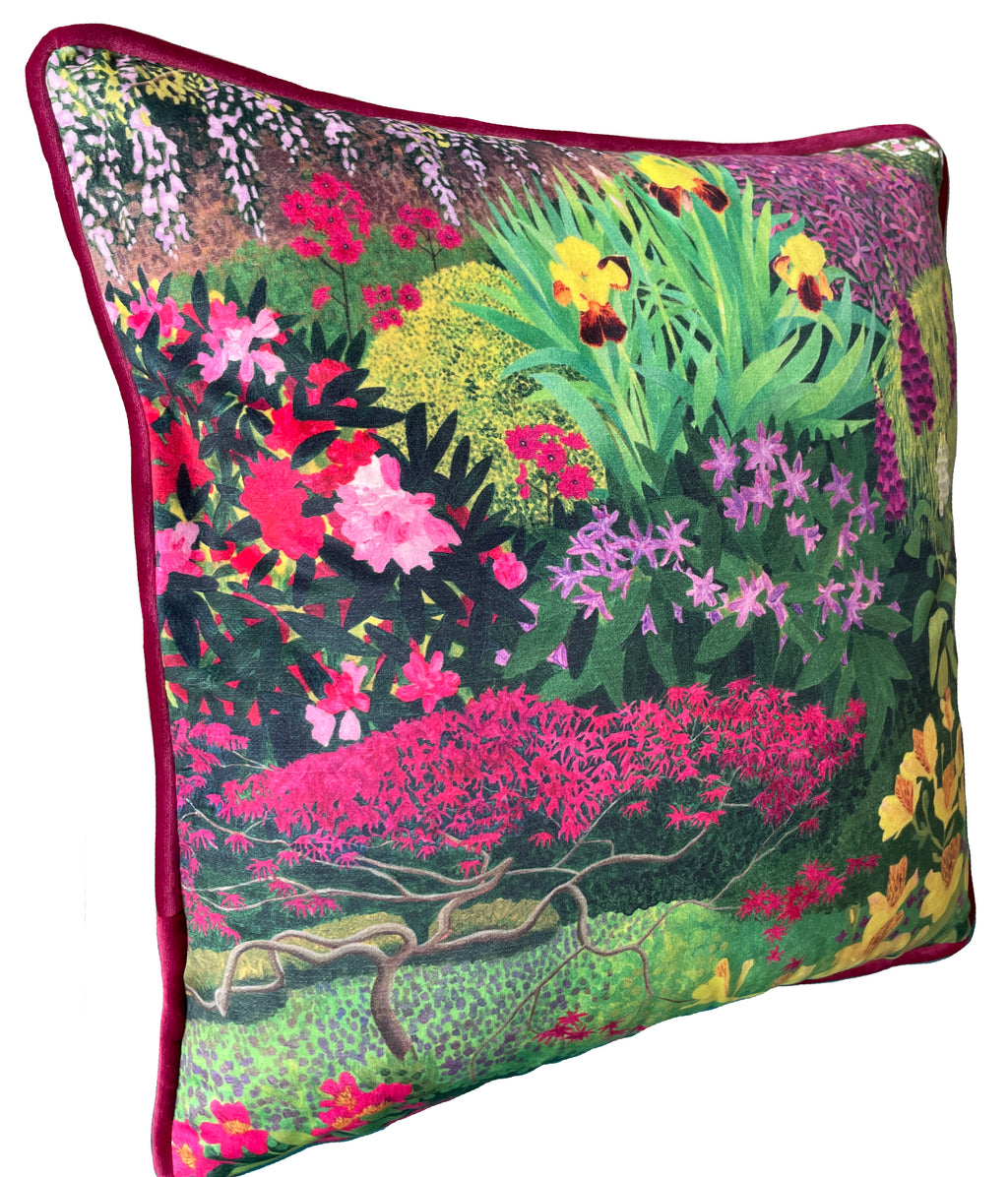 • Premium velvet cushion featuring exclusive garden artwork by Susan Entwistle
